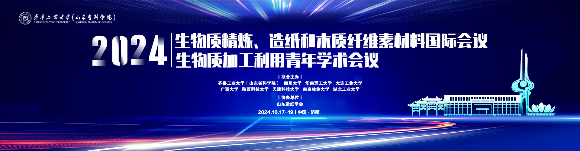 2024生物质精炼、造纸和木质纤维素材料国际会议(International Symposium on Biorefining, Papermaking, and Lignocellulosic Materials 2024, ISBPLM2024)将于2024年10月17日至19日在中国济南举行。会议将由齐鲁工业大学(QLUT)、华南理工大学(SCUT)、广西大学(GXU)、陕西科技大学(SUST)、天津科技大学(TUST)、南京林业大学(NFU)、湖北工业大学(HBUT)联合主办,山东造纸学会协办。由齐鲁工业大学(QLUT)、四川大学(SCU)、大连工业大学(DLPU)联合主办的2024生物质加工利用青年学术会议(YCBPU 2024)将同期召开。